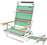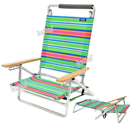 This low seat aluminum beach chair is lightweight with aluminum tubing frame and compact folding makes for easy transport and storage. Reclines to 5 positions, including a flat position that’s great for all-over tanning along the beach, poolside, or in your backyard. Tested for rigorous outdoor use. * Seat Height of 8 inches from ground and overall height of 33 inches * Folded Dimensions (inches) 31L x 26W x 3.5H * Weighs 7 lbs and 250 lbs weight capacity